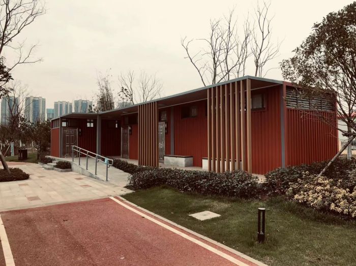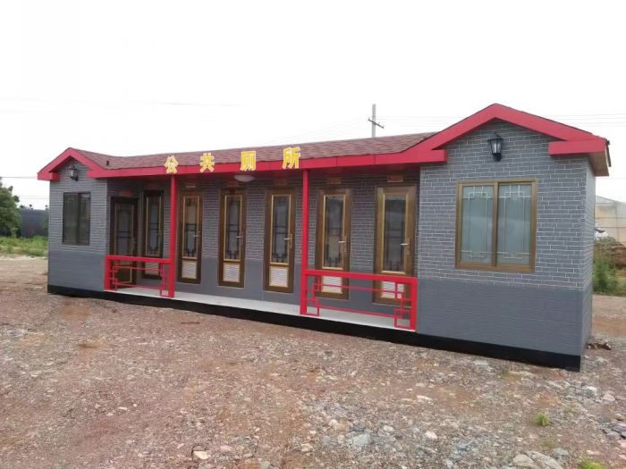 拼裝廁所;在廠里做好各個(gè)廁所部件,再到現(xiàn)場組裝在一齊,適合不易運(yùn)輸?shù)拇笮蛶?。這座箱式廁所,女廁5個(gè)蹲位內(nèi)配工具間,男廁2個(gè)蹲位+2小便斗,第三衛(wèi)生間由殘疾馬桶、助力洗手盆和兒童馬桶、兒童洗手盆外加?jì)雰号_等設(shè)施。廁所前后有窗,通風(fēng)采光,前部走廊裝有屋檐,防雨防曬。此廁所位于公路綠道邊,整體大氣,功能齊全,造型美觀,是一道難得的靚麗景觀!
